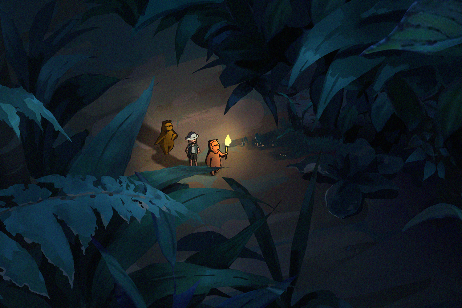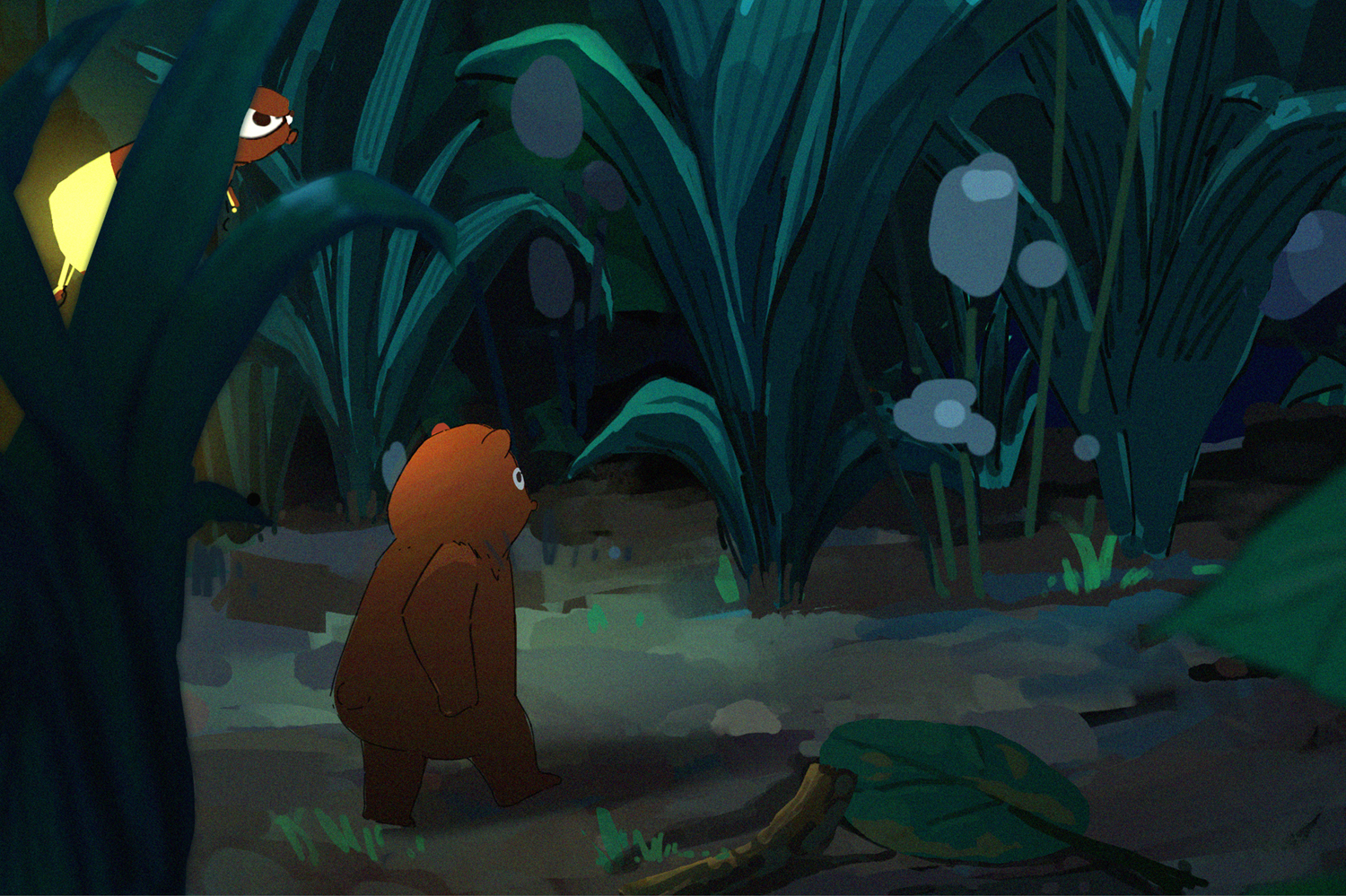 이 프로젝트는 3D 애니메이션을 위해 정교한 3D 배경을 제작하는 것을 목표로 하며, 이야기의 세 주인공인 곰 형제(웅대, 웅이)와 광두강이 축소된 상태에서 모험을 떠나는 동안 사실적인 환경을 창조합니다. 이 이야기에서 그들은 밤중에 횃불을 들고 거대한 숲을 가로지르며, 주변의 풀들은 하늘 높은 나무처럼 우뚝 솟아 있고, 땅에는 얼룩진 습기 찬 지역에 나뭇잎들이 덮여 있어 불안한 분위기를 자아냅니다.